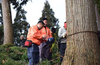植林の山は人間の手入れを必要とし、適切な伐採がされなくなった木々は重量を増し、地滑りの原因となります。木を切り倒した後は、再び杉や桧の苗木を植えます。何もしないでいると10年ほどで雑木の山になります。